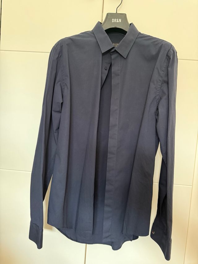 Camisa de manga larga de la marca Zara Man. - Color azul marino. - Cuello clásico. - Cierre de botones.