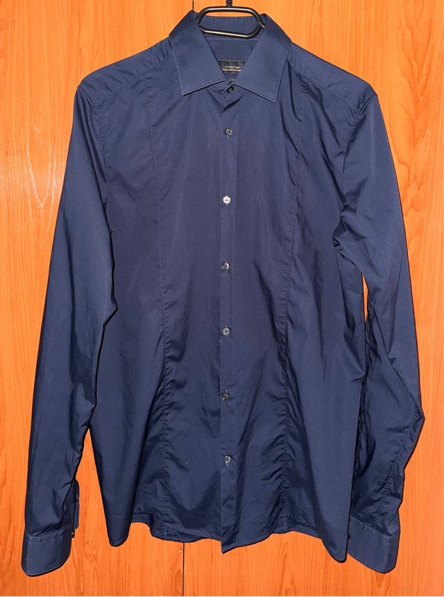 Camisa Zara manga larga azul marino