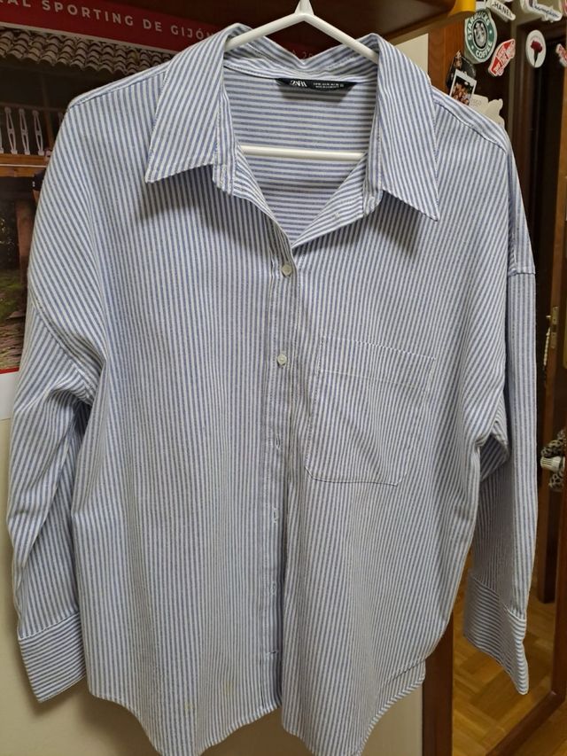 Camisa Zara Rayas Azul y Blanca Talla XL