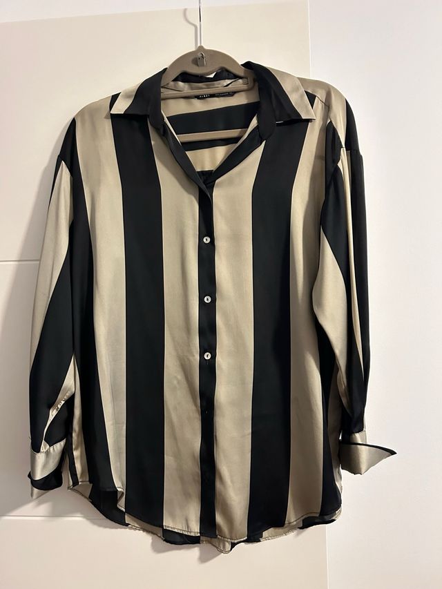 Camisa Zara Rayas Beige y Negra Mujer