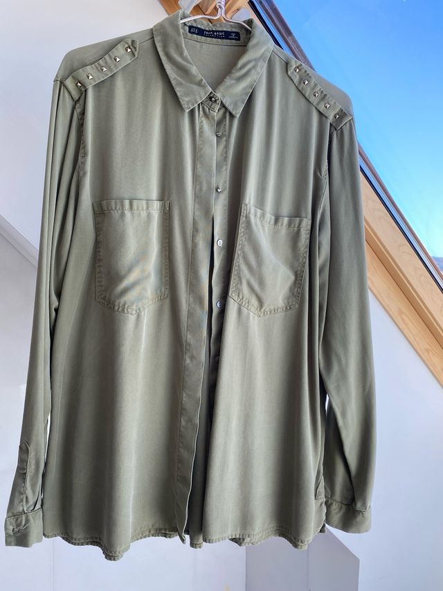 Camisa Zara verde militar con tachuelas