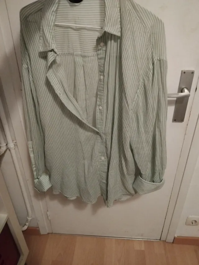 Camisa Zara Verde Rayas Mujer
