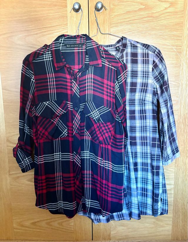 Camisas (2) de cuadros chica. XS. Zara/Massimo