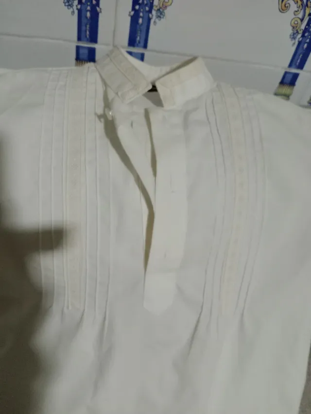 Camisa blanca o beige con detalles bordados, ideal para fallero.