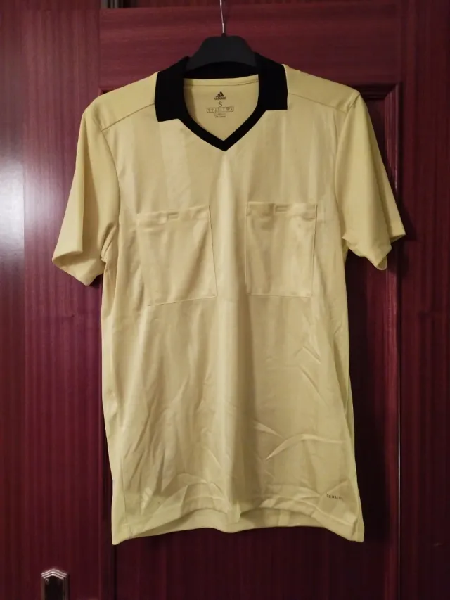 Camiseta clásica de Adidas, estilo retro, diseñada para árbitros. - Color amarillo - Cuello negro - Dos bolsillos en el pecho - Logo de Adidas