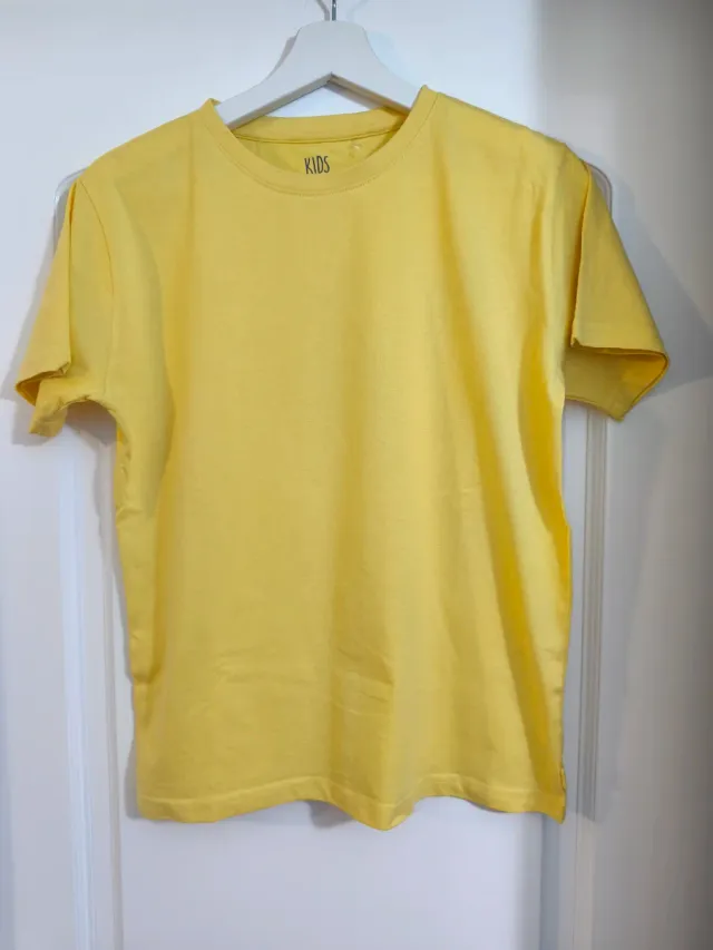 Camiseta de manga corta para niño, color amarillo. - Talla 13-14 años. - Etiqueta KIDS en el cuello.