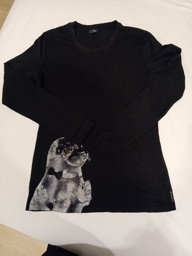 Camiseta Armani Negra con Estampado de Foca y pequ