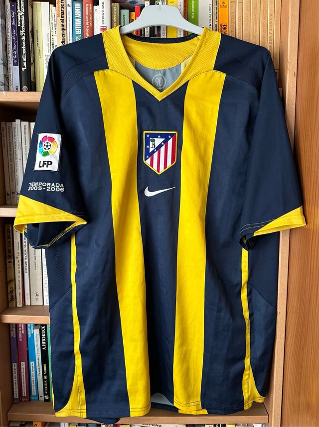 Detalles del productoTalla M. Totalmente original/oficial y en muy buen estado, con uso pero sin grandes desperfectos, tal y como se puede apreciar en las fotos. Camiseta de rayas azul y amarilla de visitante utilizada en la temporada 2005/2006, marca Nike y sin publicidad. Toda una joya para coleccionistas y aficionados del Atleti.