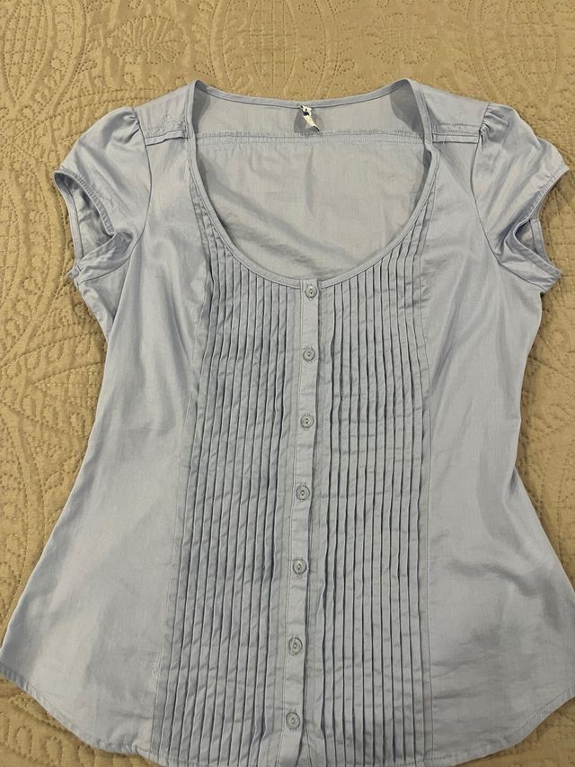 Camiseta azul con botones y fruncido