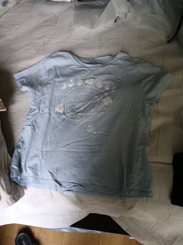 Camiseta azul con estampado de fases lunares