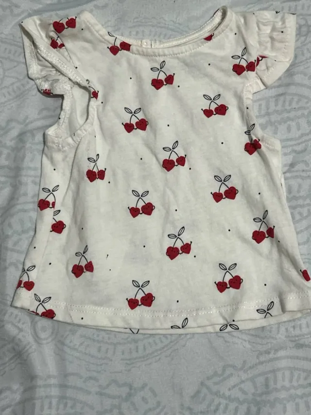 Detalles del productoCamiseta de manga corta para bebé con un divertido estampado de cerezas.