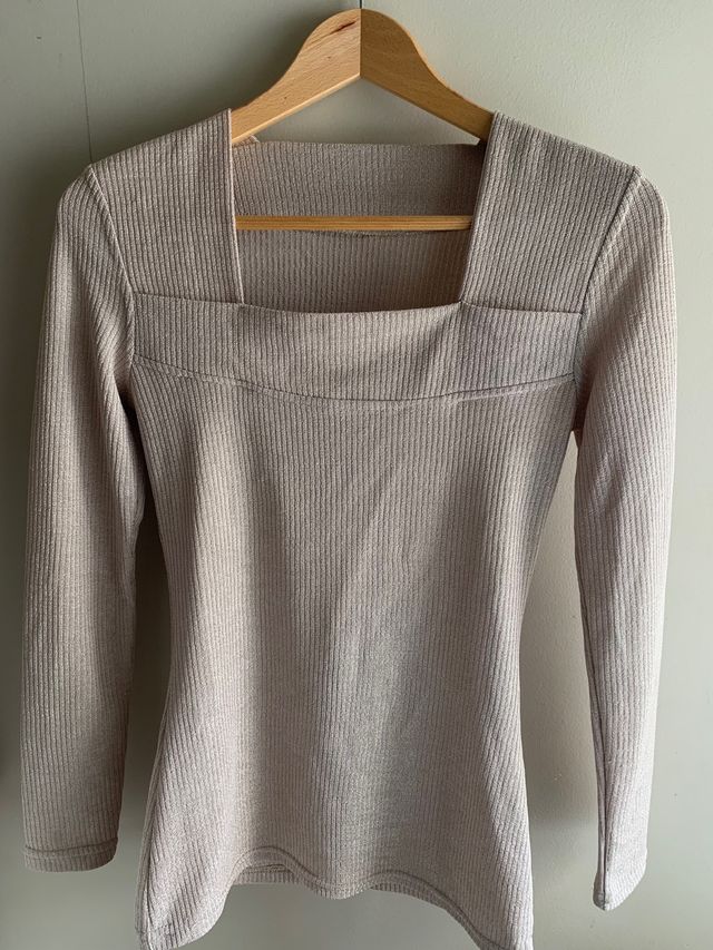 Camiseta beige cuello cuadrado