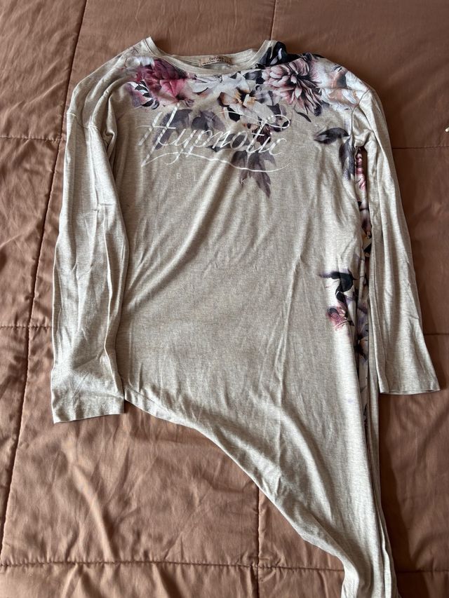 Camiseta Bershka floral beige