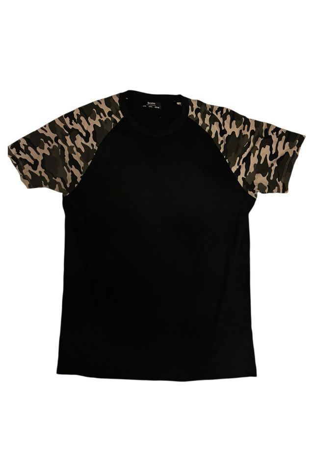 Camiseta Bershka Negra Mangas Camuflaje Talla M