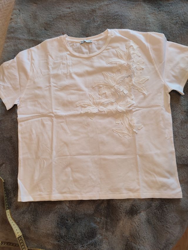 Camiseta blanca algodón aplique bordado