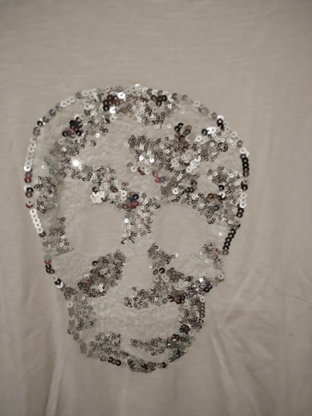 Camiseta blanca calavera lentejuelas plata