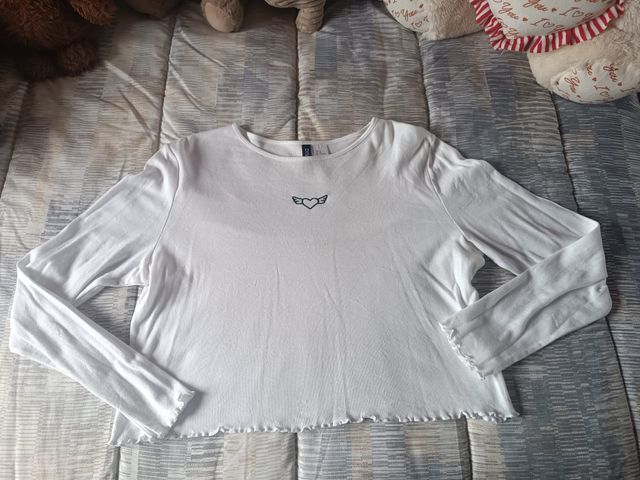 Camiseta Blanca Manga Larga H&M | Talla XL
