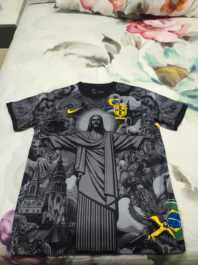 Detalles del productoCamiseta de la selección de Brasil con un diseño inspirado en el Cristo Redentor.