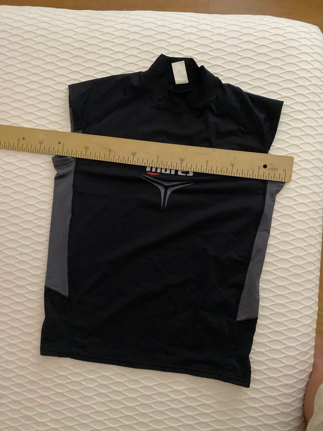 Prenda interior de buceo sin manga. Perfecto para usar debajo de los trajes de neopreno para una mayor protección térmica. También es adecuado para los deportes acuáticos, ya que ofrece protección contra las ligeras rozaduras. 85% Nylon 15% spandex.