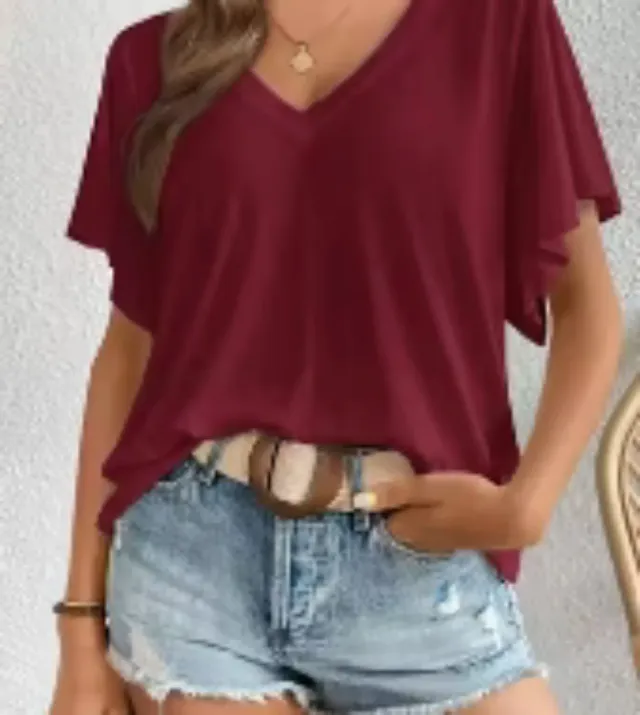 Detalles del productoCamiseta casual de manga corta murciélago con escote en V.