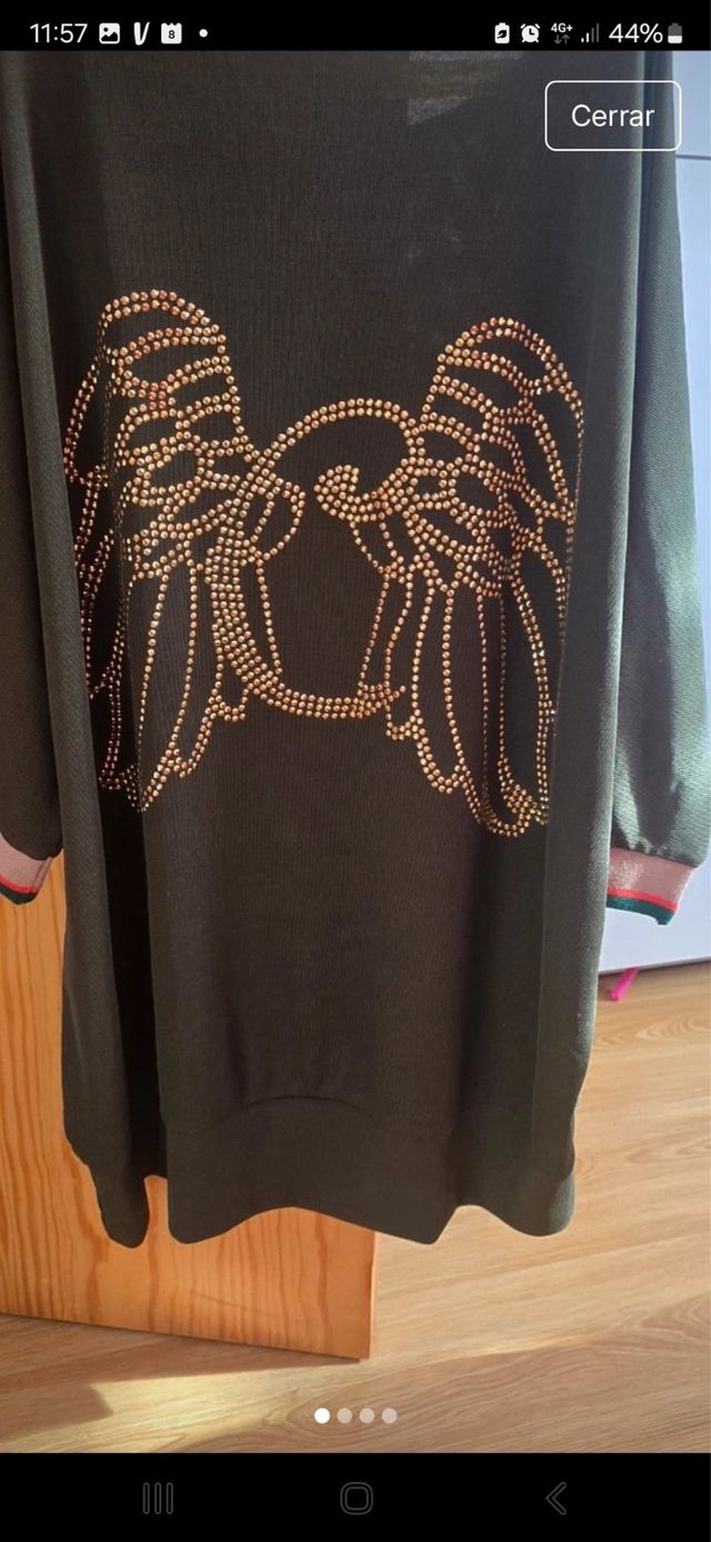 Camiseta con pedrería alas doradas camaleonica