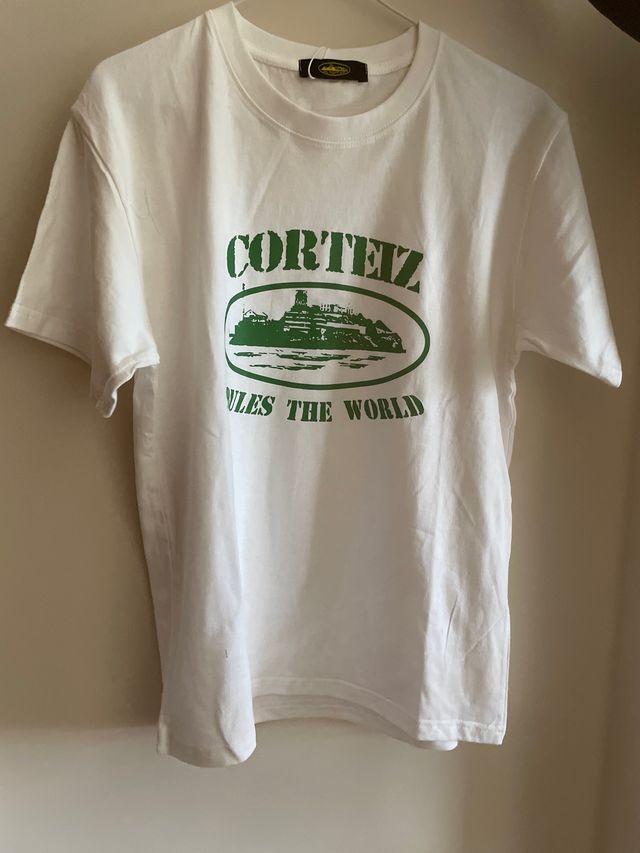 Camiseta de la marca Corteiz en color blanco. Presenta un diseño gráfico en la parte delantera.