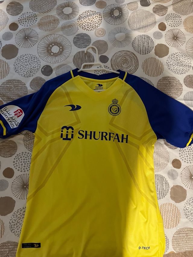 Camiseta de fútbol en perfecto estado con diseño deportivo en amarillo y azul.