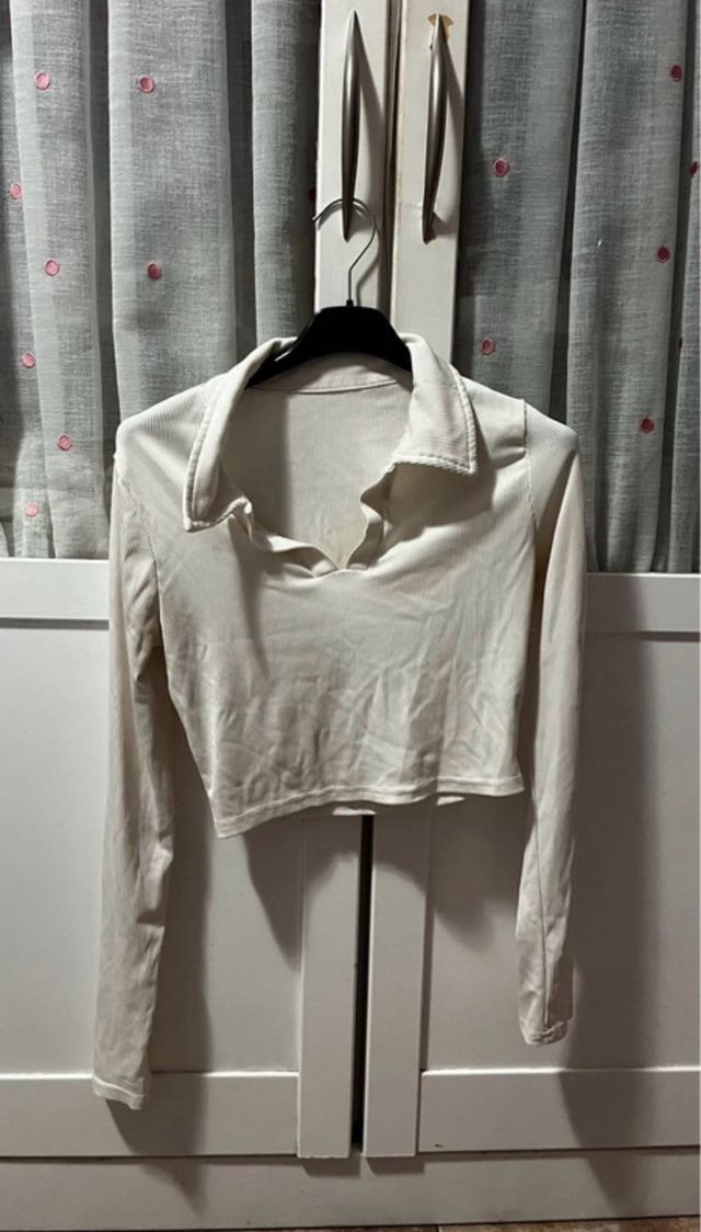 Camiseta Crop Top Manga Larga Cuello Polo
