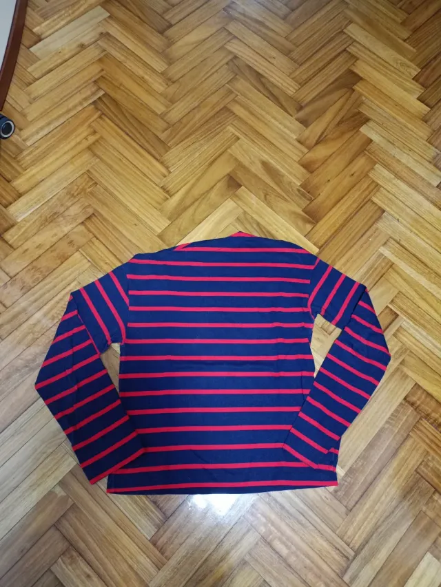Camiseta de rayas azul y roja