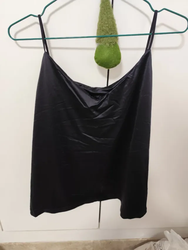 Camiseta de seda negra con tirantes