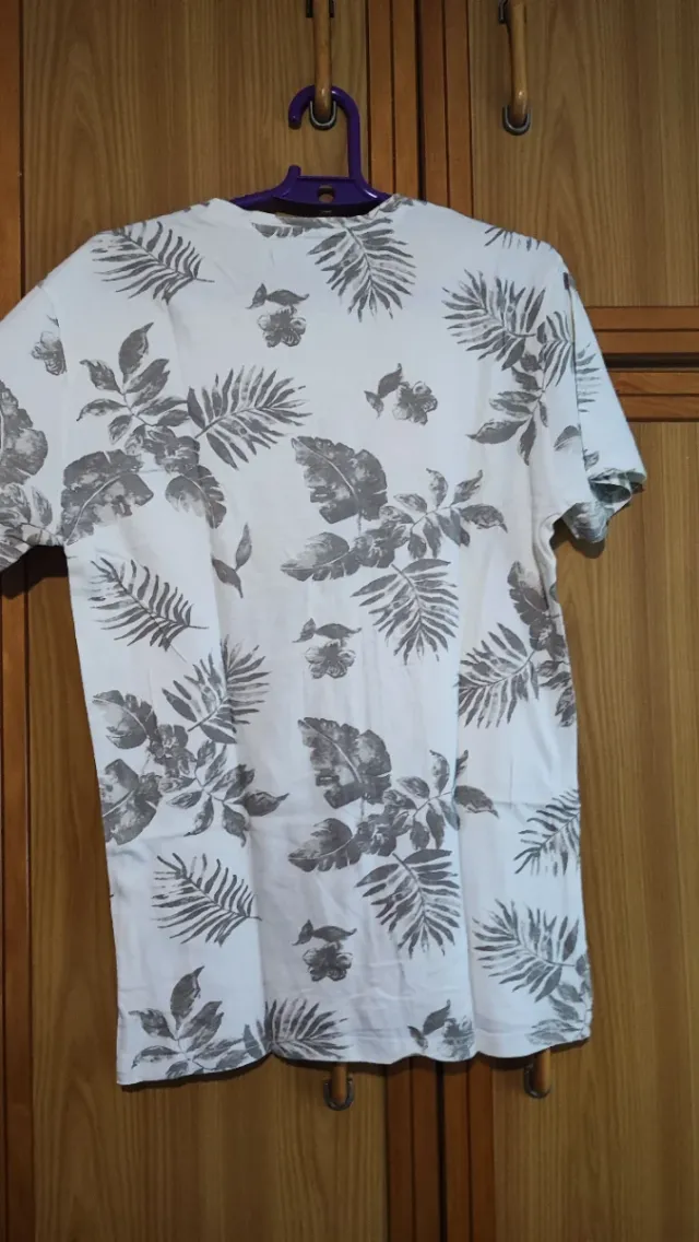 Camiseta estampada hojas grises y blancas