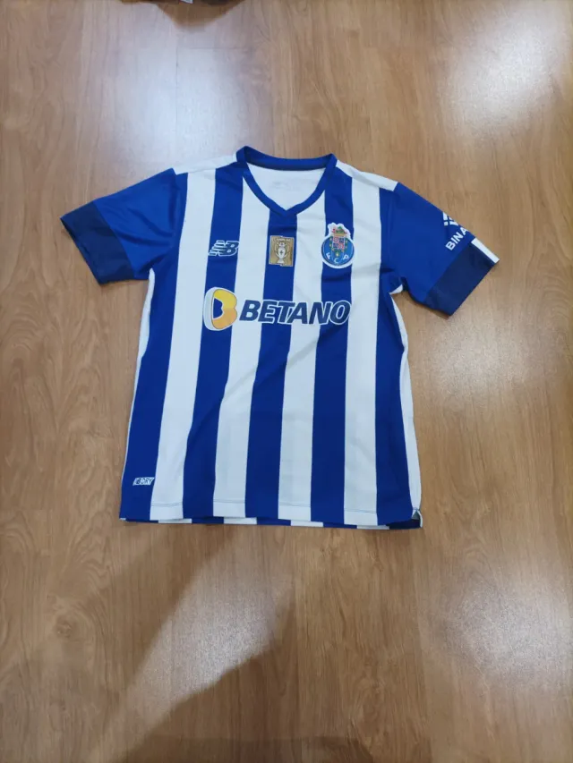 Detalles del productoCamiseta de fútbol del FC Porto con diseño de rayas verticales azules y blancas.