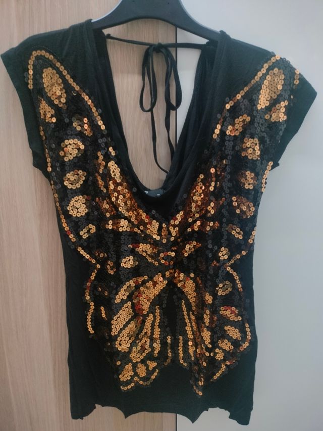 Camiseta fiesta lentejuelas mariposa S