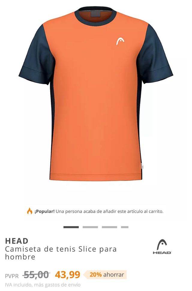 Camiseta de pádel de la marca HEAD en color naranja y talla S. - Diseño deportivo. - Cuello redondo. - Mangas cortas.