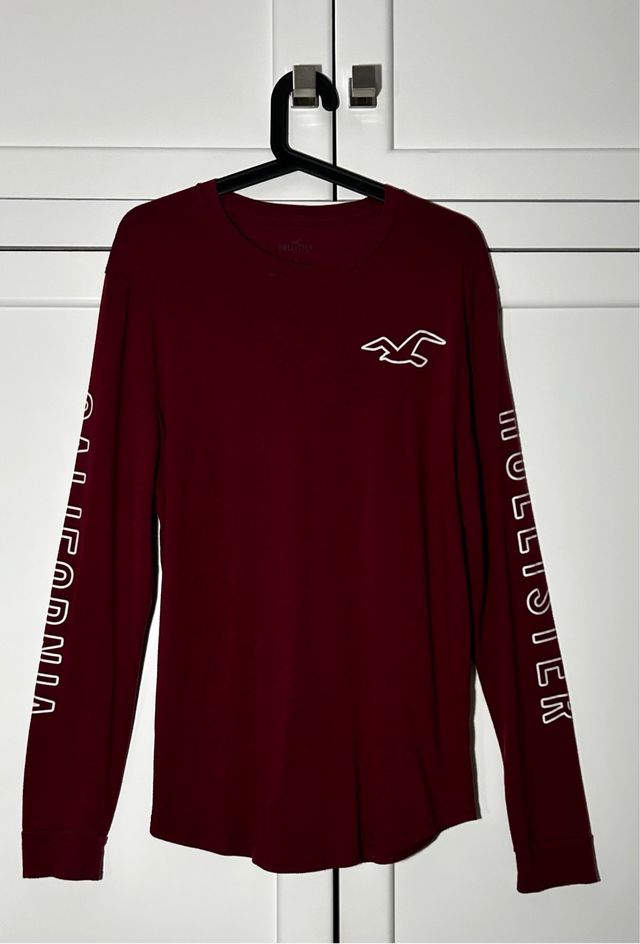 Camiseta hombre Hollister burdeos manga larga.