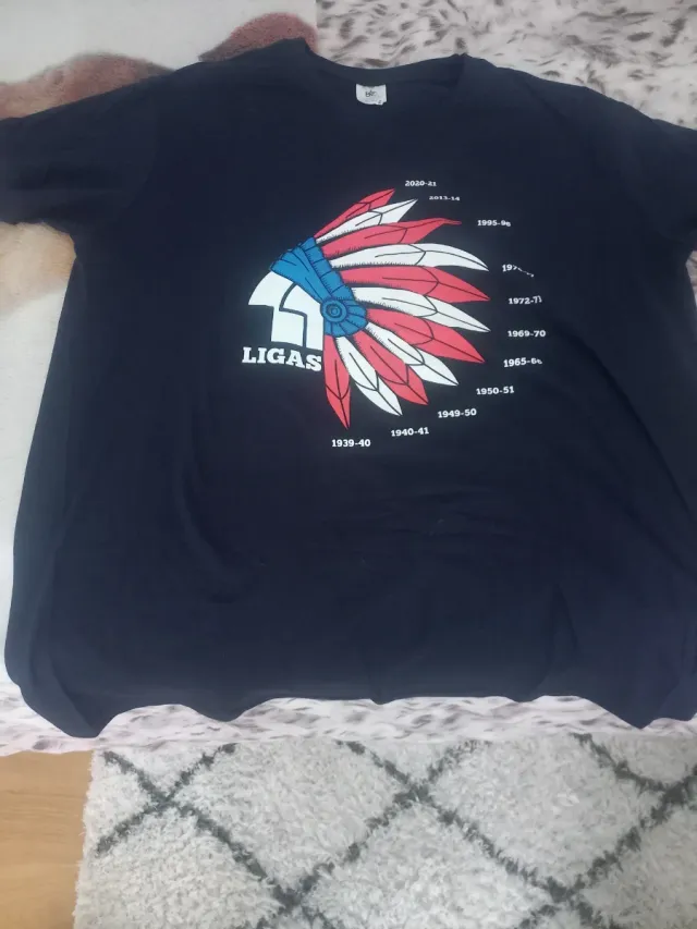 Preciosa camiseta de colección con diseño Ligas. - Diseño frontal con un tocado de indio y años. - Color azul marino.