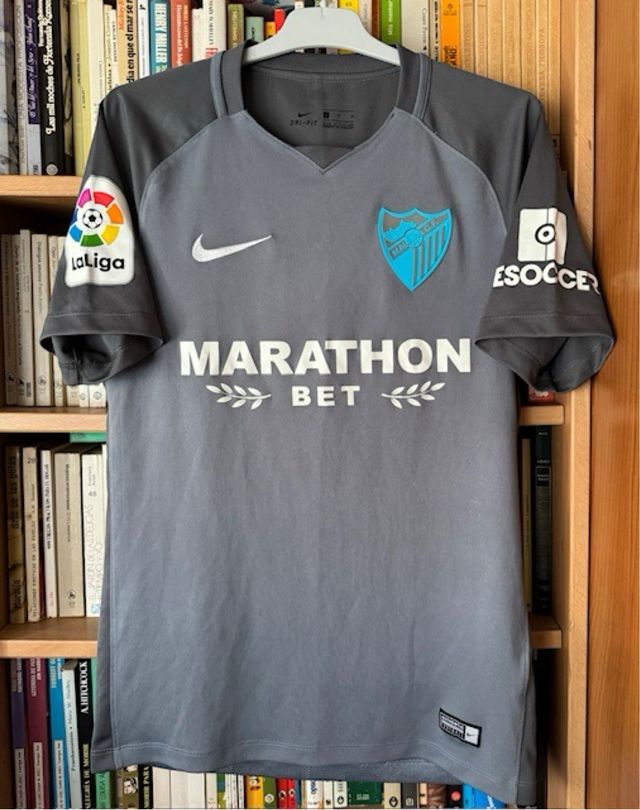 Detalles del productoTalla S. Totalmente original/oficial y en buen estado, con uso pero sin grandes desperfectos, tal y como se puede apreciar en las fotos. Camiseta gris de visitante utilizada en la temporada 2017/2018, marca Nike y con publicidad de Marathon Bet. Toda una joya para coleccionistas y aficionados del Málaga Club de Fútbol.