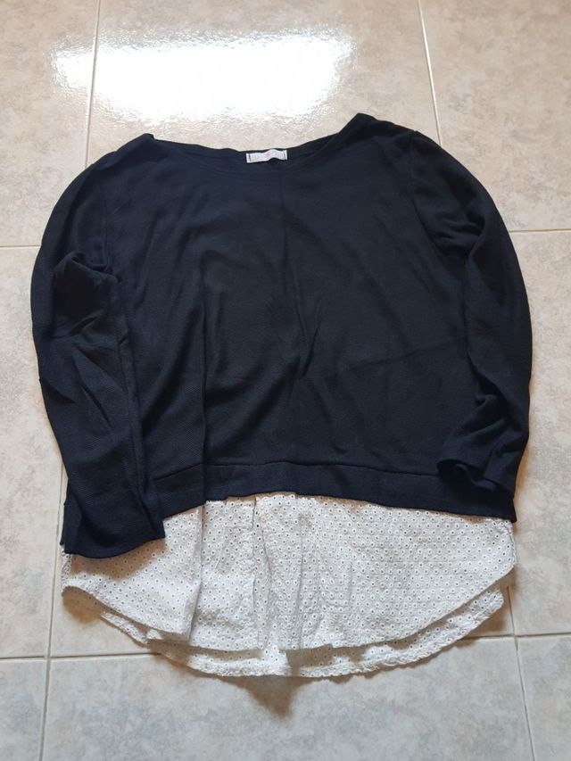 Camiseta manga larga negra y blanca.