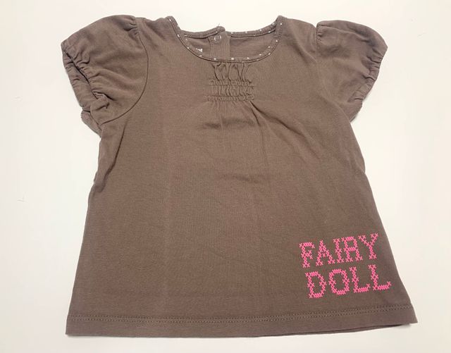 Camiseta marrón de manga corta con serígrafía "Fairy Doll" de la marca Vertbaudet. 100% algodón. Con marcas de uso. HAGO ENVÍOS. ¡Mira más productos en mi perfil!
