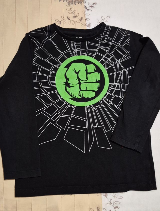 Camiseta negra de manga larga con el logo de Hulk de Marvel. - Diseño con el puño de Hulk en verde. - Estampado gráfico en la parte delantera.