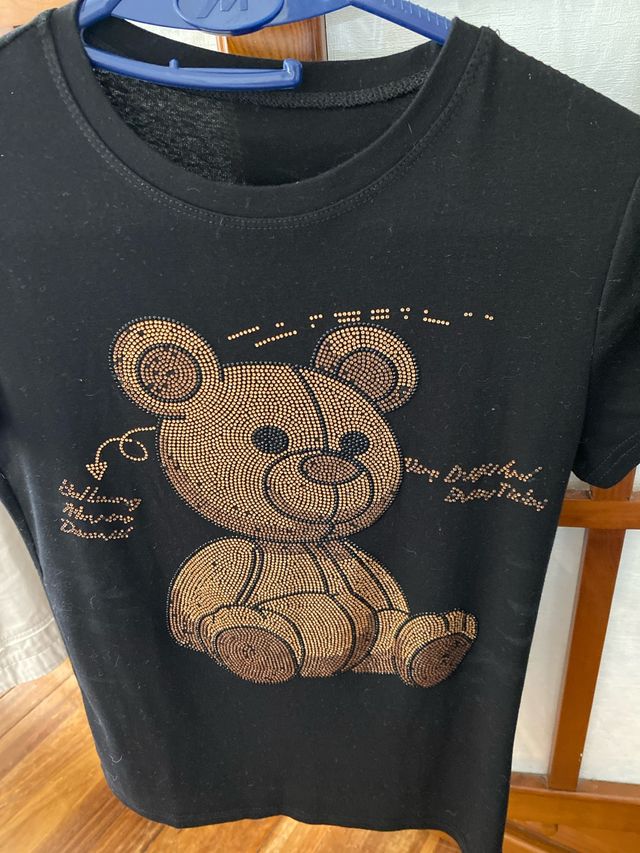 Camiseta negra con osito dorado