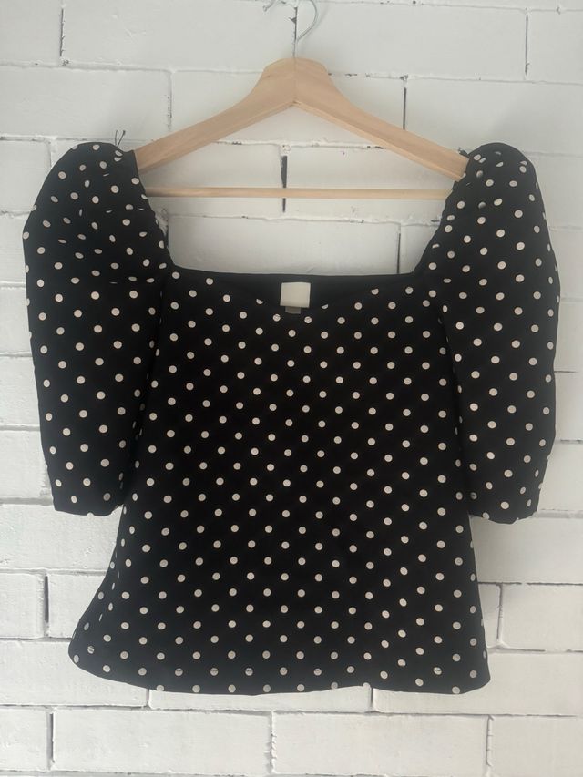 Camiseta negra con topos blancos