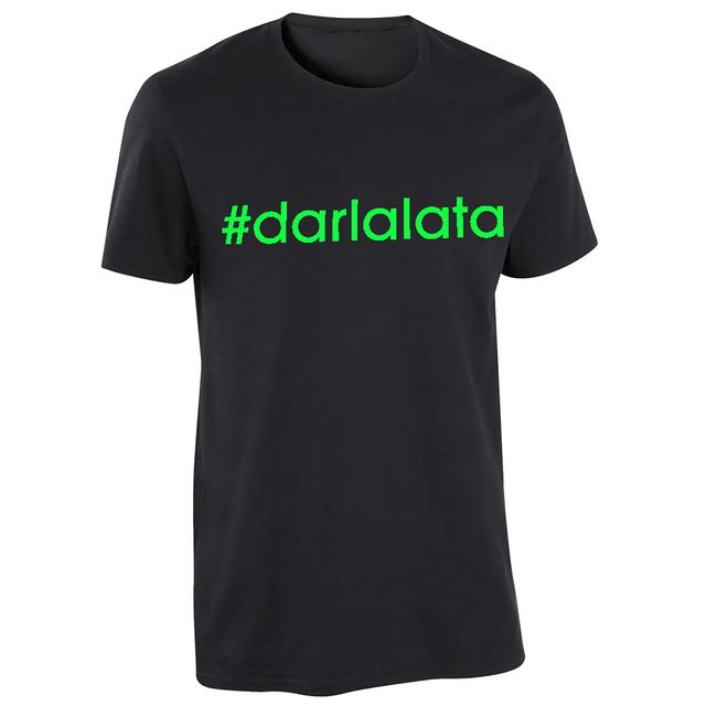 Camiseta negra #darlalata hombre. Estampación a elegir en blanco, rosa flúor o verde flúor. Todas las tallas