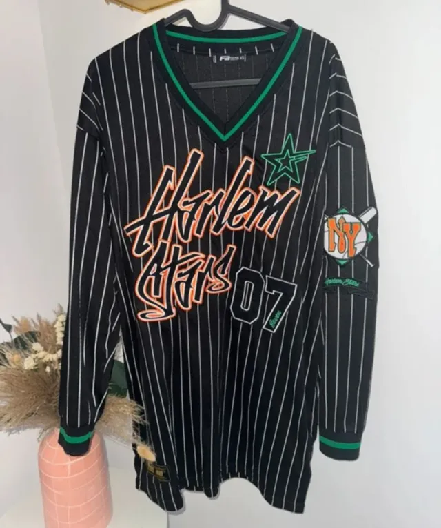 Camiseta Negra Rayas Verdes Harlem Stars.