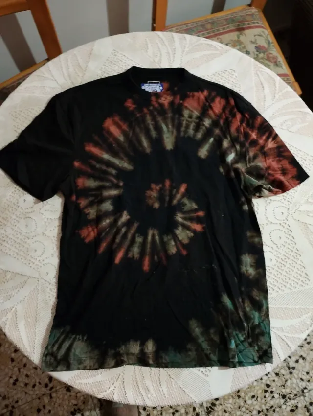 Camiseta negra tie-dye con lejía