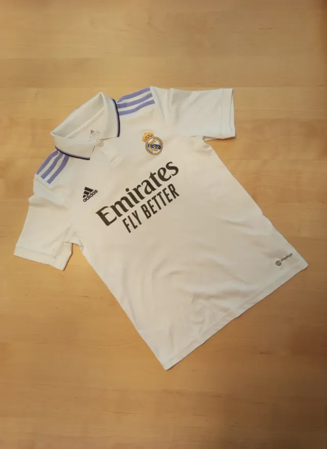 Camiseta oficial de la temporada 2022-2023 del Real Madrid. - Talla 11-12 años/152cm - Hecha de plásticos reciclados, sostenible. - Sin ninguna marca de uso