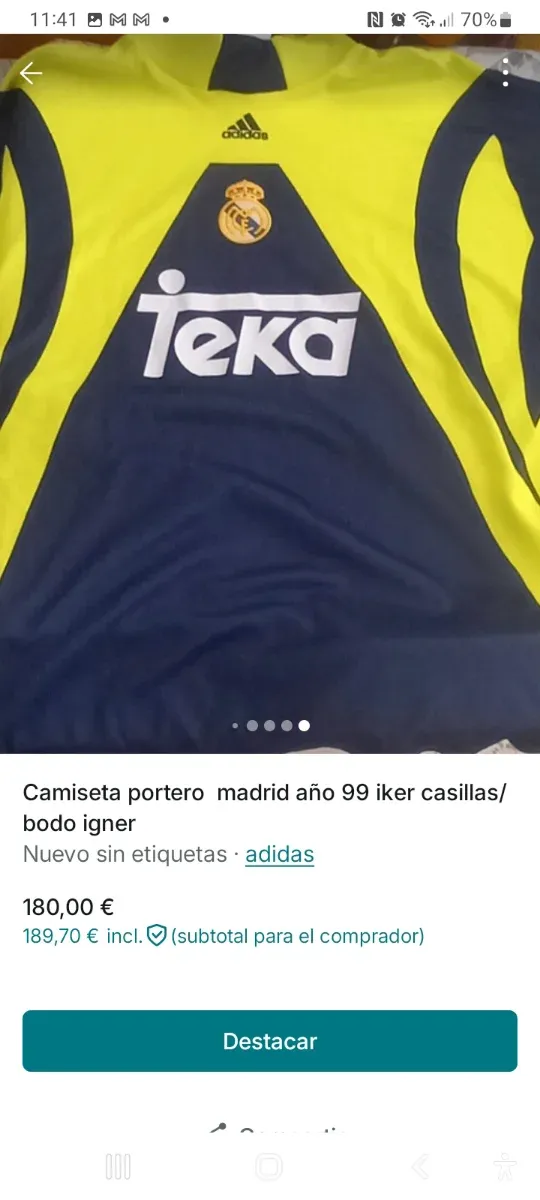 Detalles del productoCamiseta de portero del Real Madrid de la temporada 1999.