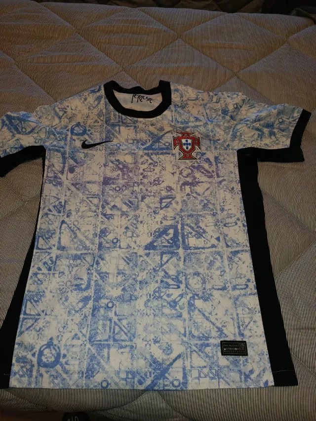 Camiseta de Portugal con un diseño único. - Diseño con estampado azul y blanco. - Logo de Nike. - Escudo de Portugal.