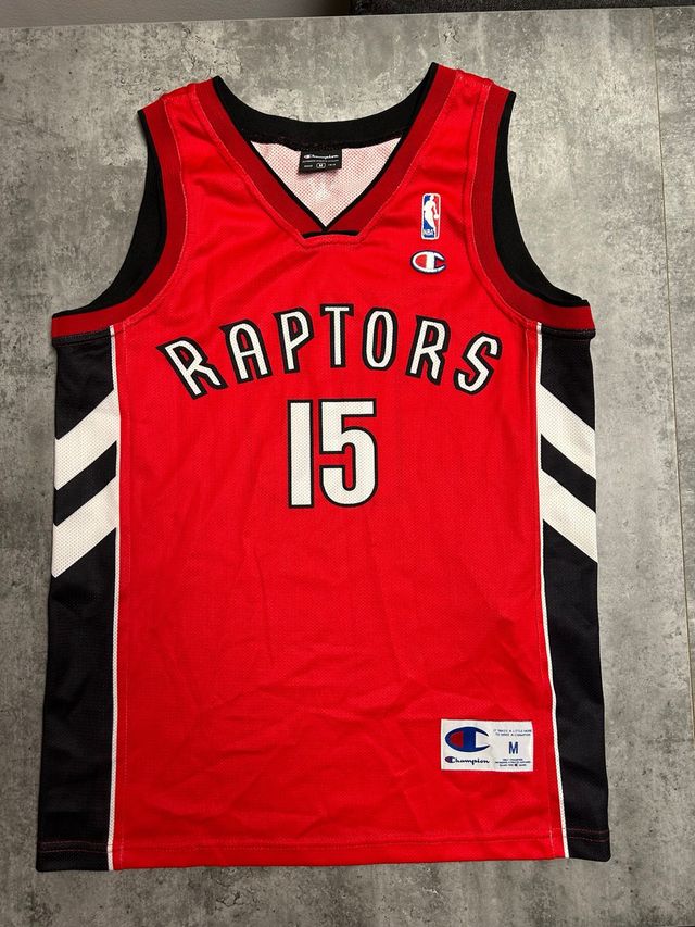 Detalles del productoCamiseta de baloncesto de los Toronto Raptors, número 15, de Jorge Garbajosa. Marca Champion.
