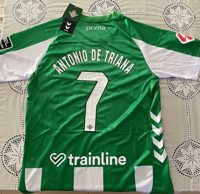 Camiseta de fútbol del Real Betis Balompié. - Dorsal: a elegir. - Nombre: a elegir - Color: Verde y blanco - Diseño con detalles
